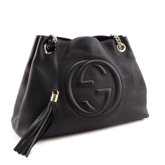 SAUVEGARDER 24%Gucci Black Pebbled Calfskin Medium Soho Chain Shoulder Bag