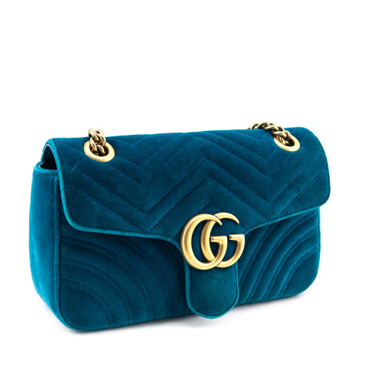 SAUVEGARDER 24%Gucci Teal Velvet Matelasse Small GG Marmont Shoulder Bag