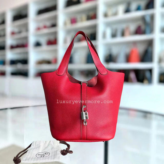SAUVEGARDER 23%Hermes Picotin 22 - Rouge Clémence Ferrures Argentées