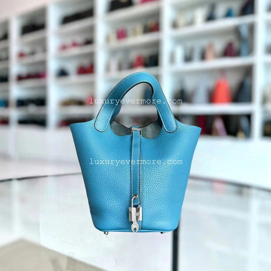 Dépôt de Hermes Picotin 22 Clémence Blue Atoll Quincaillerie Argent